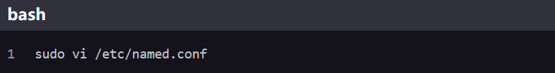 Bind的主配置文件通常位于/etc/named.conf。打开该文件进行编辑: